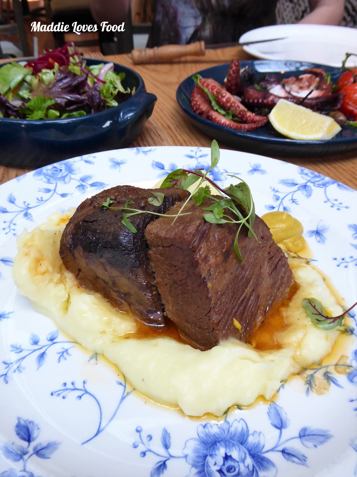 It really is all about letting the meat shine here. The daily spit roast is a must order. Today it’s a pork roast, cooked over hot coals and served with baked potatoes, sour cream and zingy chimichurri. There’s a mixture of succulent, pull apart meat and caramelised, golden bits so that you get a bit of everything. There are also shards of crispy pork skin on top – not the bubbly crackling variety, but the kind that snaps and shatters like glass.