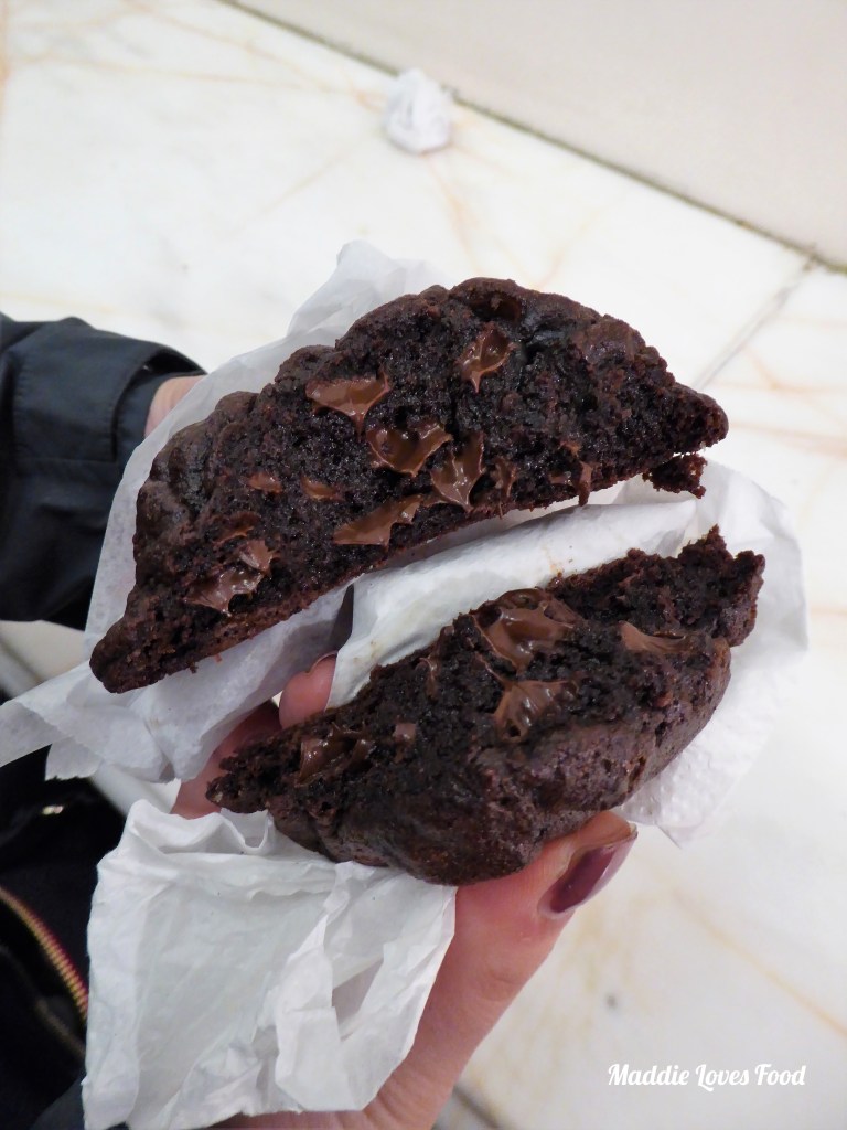 I think it’s the size and chunkiness that sets Levain Bakery’s cookies apart from others. The website says that they’re 2 inches thick – that’s a 5cm tall cookie! They’re slightly taller in the middle, which helps create a perfectly chewy, gooey inside and crispier edge.