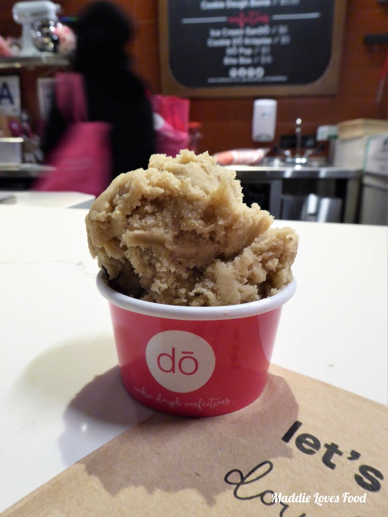 Cookie dough is a really popular sweet treat in the U.S., but not so much in Sydney. D’Oh is a shop that sells different flavours of cookie dough by the scoop. We thought we’d give a it a try to see what the hype was all about and had a scoop of the chocolate chip cookie dough.